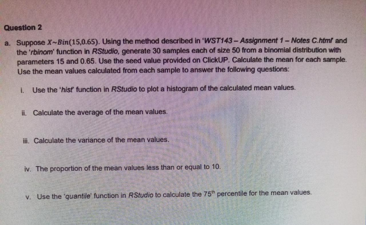 Solved Question 2 A Suppose X Bin 15 0 65 Using The Me Chegg Com