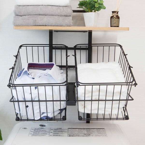 楽天市場 ランドリーラック バスケット付 突っ張り ラダー洗濯機ラック バスケット 防水パン スリム カゴ かご 付 収納 隙間 すき間 洗濯機 上 ラック ランドリーバスケット シンプル 棚 2段 台 川口工器株式会社 Online Shop