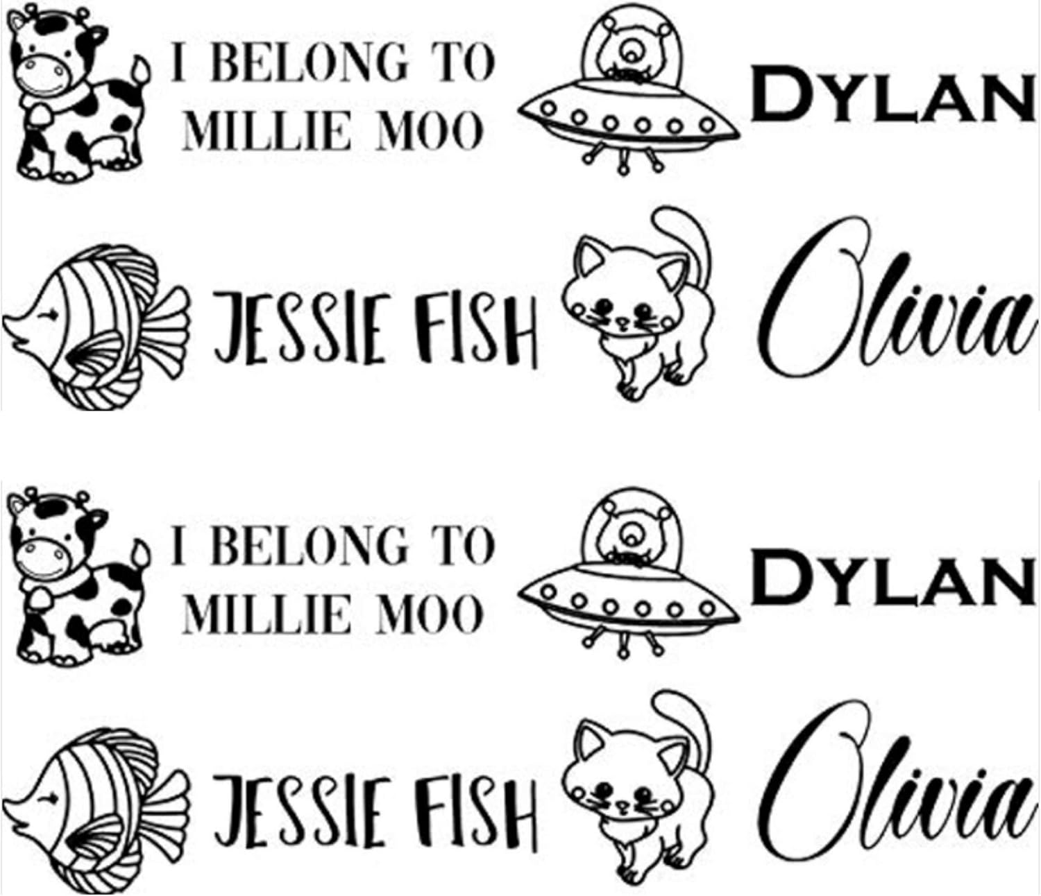 Amazon Com Stick On Kids Clothing Labels Personalized White Labels Clothes Name s Washer And Dryer Safe Pack Of 60 Assorted Shapes And Sizes Office Products