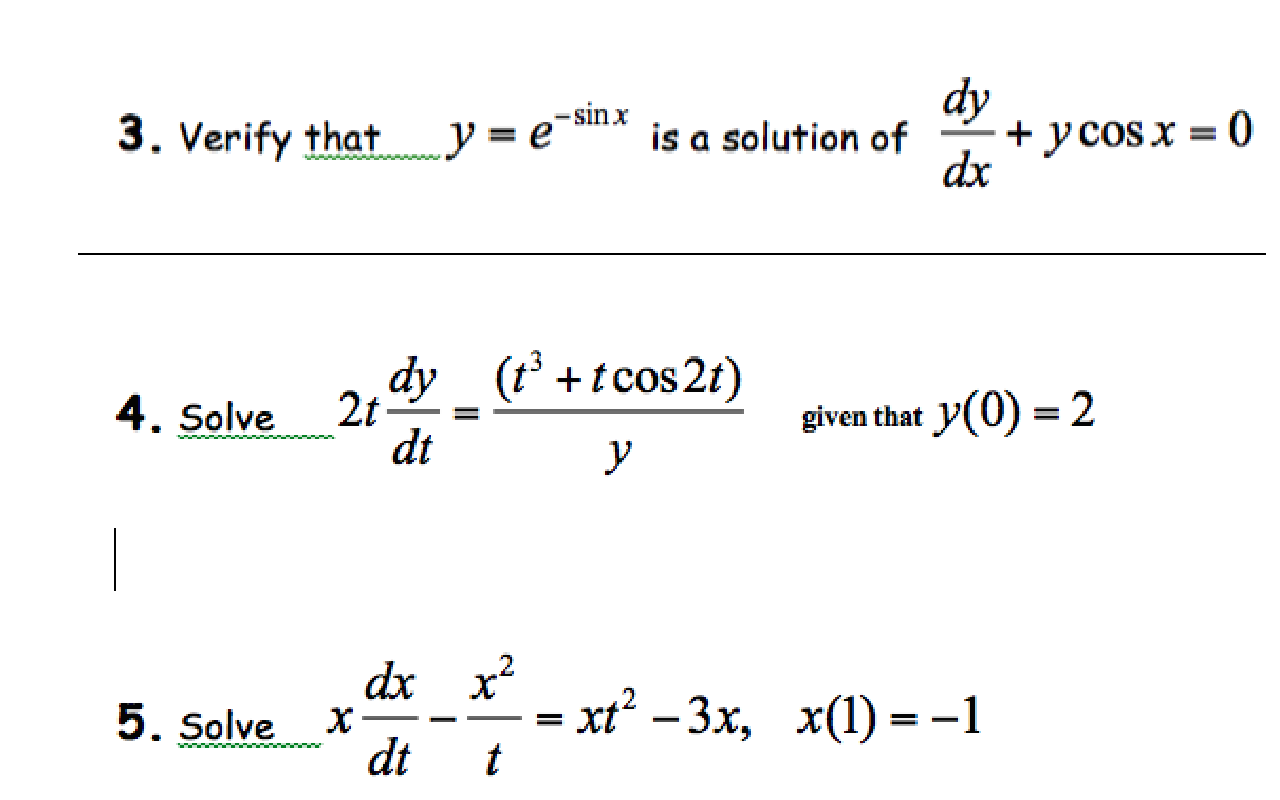 Solved 3 Verify That Y E Sin X Is A Solution Of Dy Dx Y Chegg Com