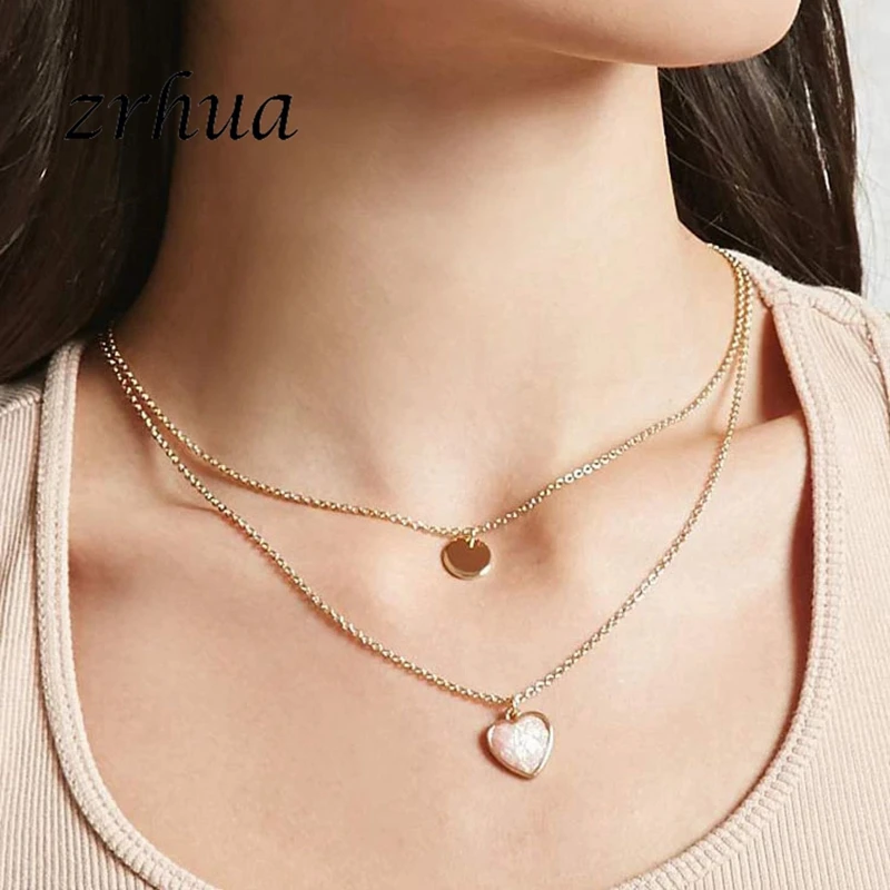 Heart Choker Necklace For Women Gold Silver Color Chain Love Two Layer Chain Necklace Pendant On Neck Bohemian Necklace Jewelry Choker Necklaces Aliexpress