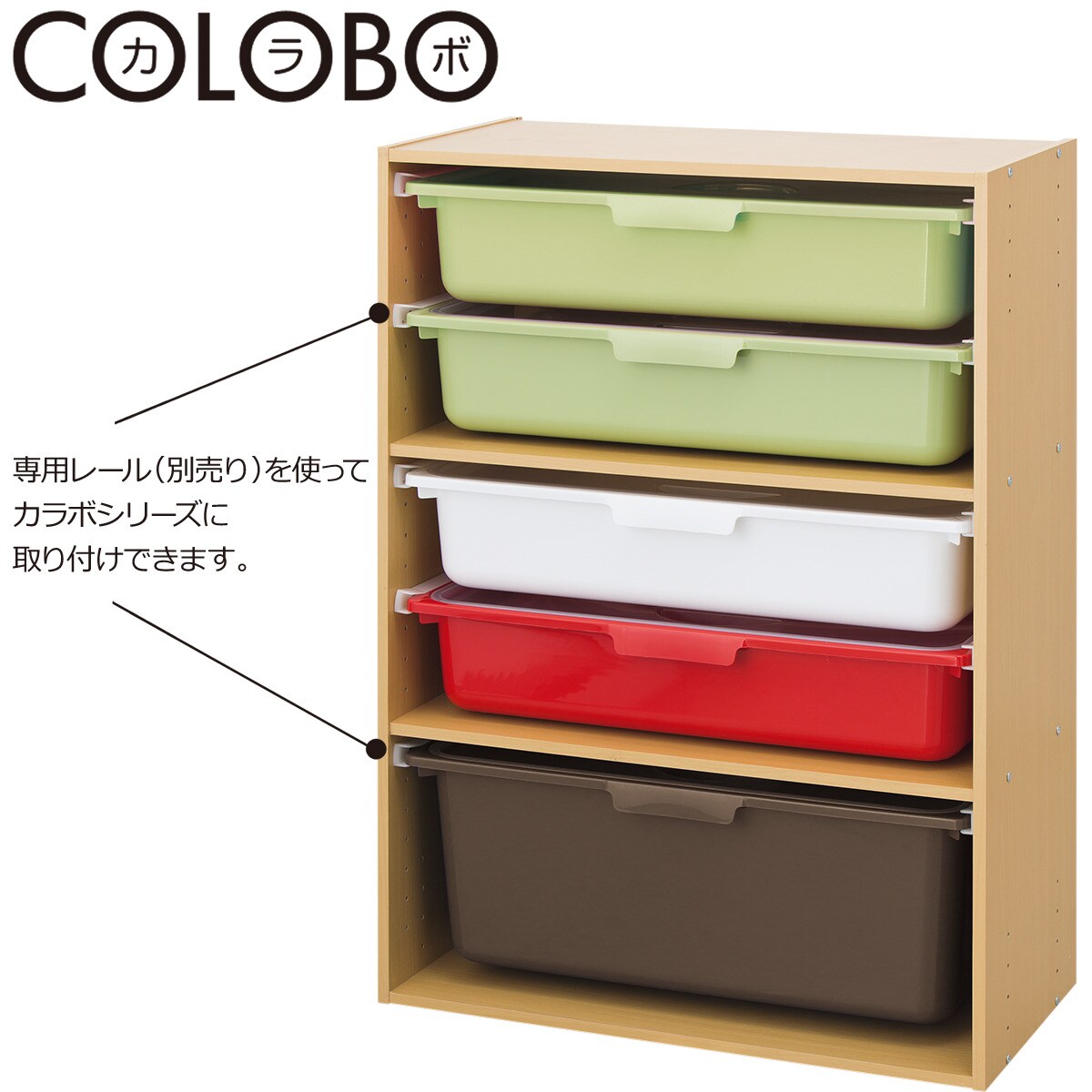 ニトリの公式通販”ニトリネット”のほうでは購入可能でした。 購入したニトリのカラーボックスに 『カラボにぴったり収納ボックス専用引き出しレール』を取り付けて 『カラボにぴったり収納ボックス(浅型)』をセットするだけ。. 後日、ニトリで最新のカラボを買ってきました。色は明るめのナチュラルにしました。 「カラーボックスカラボ ワイド3段(幅60.9×奥行29.8×高さ87.8)」1990円 「カラーボックスカラボ3段(幅41.9×奥行29.8高さ87.8)」1190円 レール設置は棚取り付け前がおススメ. カラボにぴったり 収納ボックス専用引出しレール 2本組(WH) を使った実例写真が56枚投稿されています。月間400万人以上が利用する住まいと暮らしのSNSメディア"RoomClip"のユーザさんが実際に使っているカラボにぴったり 収納ボックス専用引出しレール 2本組(WH) の実例写真やコメントは.