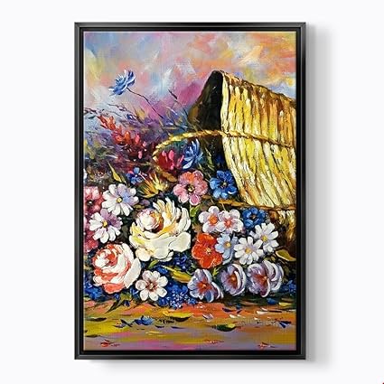 Amazon Com Pluscanvas Flower In The Basket 30 X 45cm 12 X 18 Black Framed Print Posters Prints