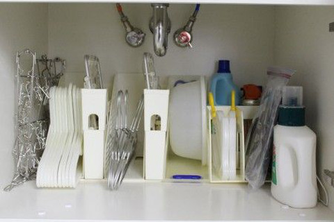 ピンチハンガーをバインダーで仕切ると絡まない 洗面所まわりで便利な収納術