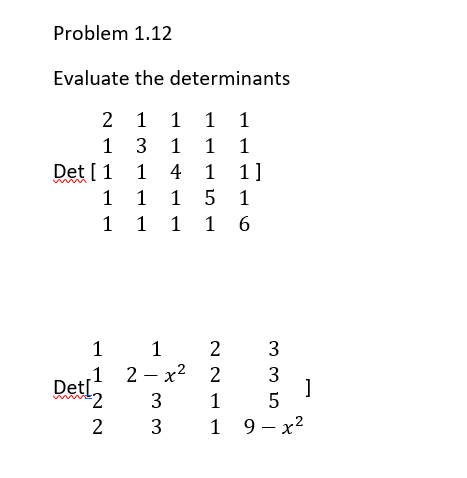 Solved Evaluate The Determinants Det 2 1 1 1 1 1 3 1 1 1 Chegg Com