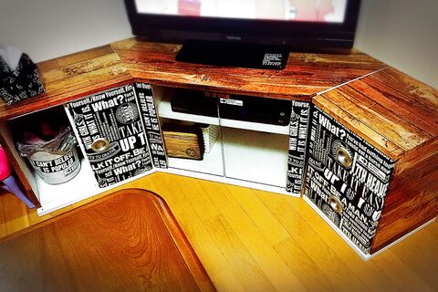 リメイクシートでtv台を男前にdiy 暮らしニスタ