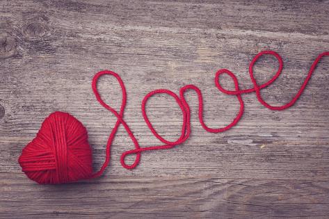 Red Heart Of Red Wool Yarn On A Wooden Background Photographic Print Egal Allposters Com