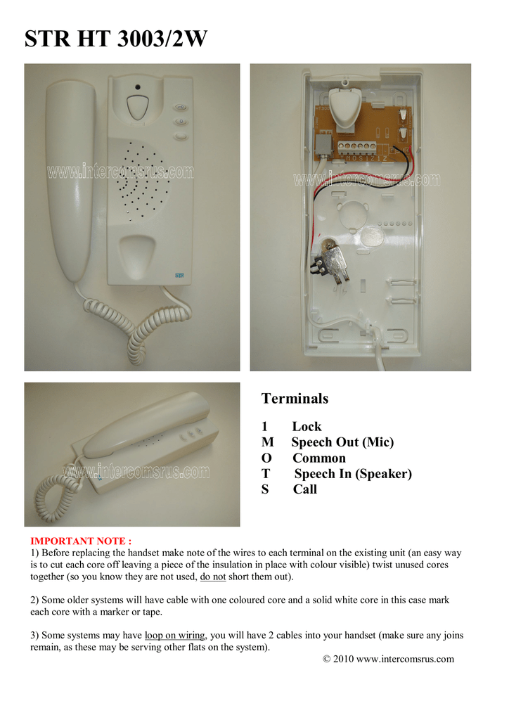 STR HT 3003/2W Terminals 1 Lock M Speech Out (Mic) O Common T Speech In (Speaker) S Call IMPORTANT NOTE :. Kostenlose Lieferung für viele Artikel!. HT 02/3 ( Haustelefon mit Gongruf ).