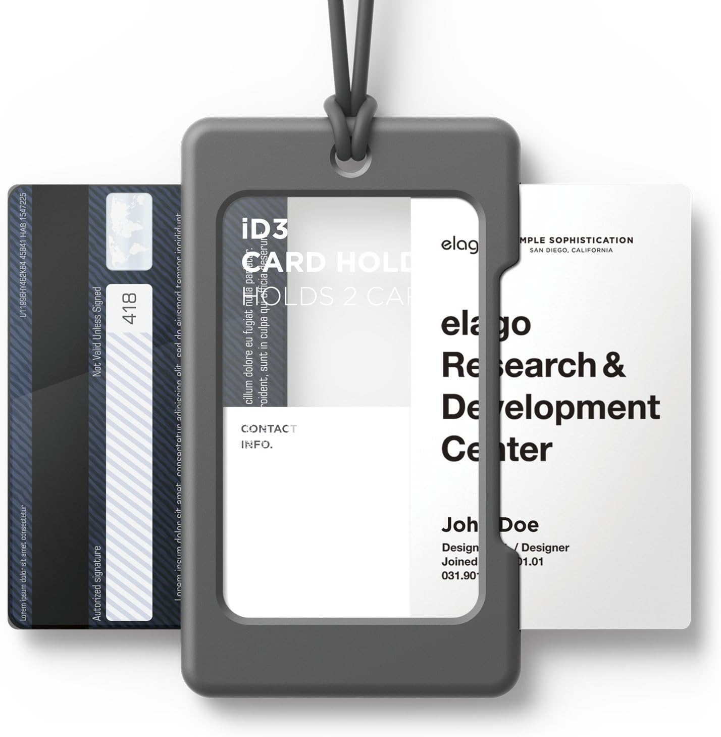 Amazon Com Elago Id3 Id Card Holder Body Dark Grey Strap Dark Grey Two Card Storage Lighter Silicone Strap Light Weight For Id Cards Credit Cards Office Products