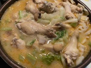葛西暢人 蕎麦じゃ物足りないから 生姜効かせた鍋物も用意した よだれ鶏的鍋 手羽元 白菜 鍋