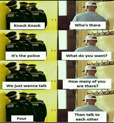 Something To Try When The Police Knock At Your Door Knock Knock Police Funny
