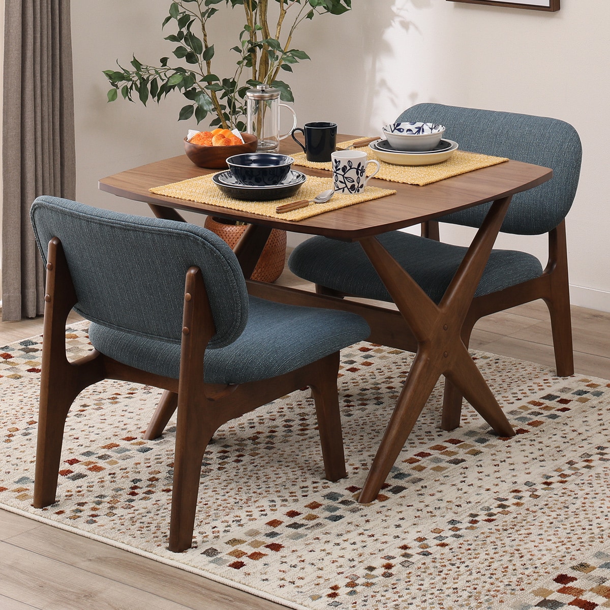 幅75 ダイニングテーブルセット 3点 2人掛け 天然木 正方形 食卓テーブル チェア 木製 カントリー 北欧 おしゃれ カフェ イームズ タンスのゲン