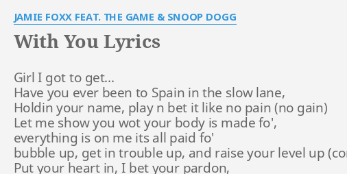 With You Lyrics By Jamie Foxx Feat The Game Snoop Dogg Girl I Got To