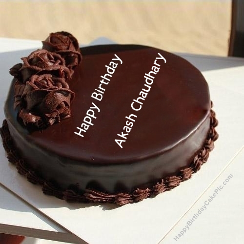Happy Birthday Chocolate Rose Cake With Friend Name Akash Happy Birthday Chocolate Cake Birthday Cake With Candles Cake Name