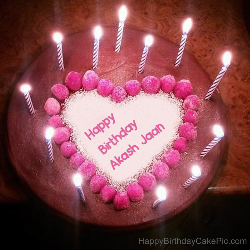 Candles Heart Happy Birthday Cake For Akash Jaan