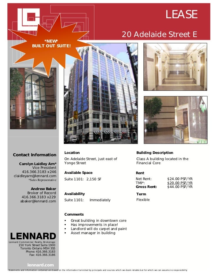 1 Adelaide St E Toronto On M5c 2v9 Office Property For Lease On Showcase Com