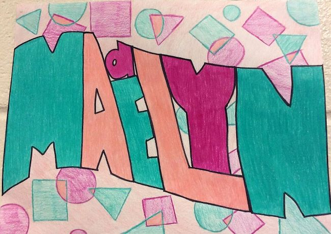 5th Grade Creative Name Design 9 X12 Art Teacher Susan Joe Teaching Art 5th Grade Art Art Lessons