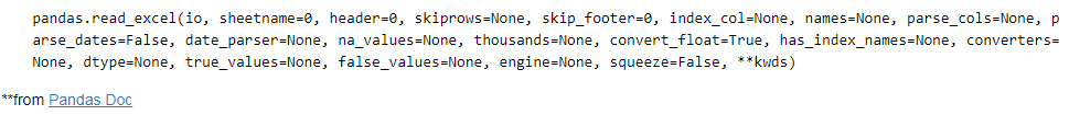The following are 30 code examples for showing how to use pandas.read_excel().These examples are extracted from open source projects. Pd.read_excel('path_to_file.xls', sheetname='Sheet1') There are many parsing options for read_excel(similar to the options in read_csv. Recall from the video that, given an Excel file imported into a variable spreadsheet, you can retrieve a list of the sheet names using the attribute spreadsheet.sheet_names.