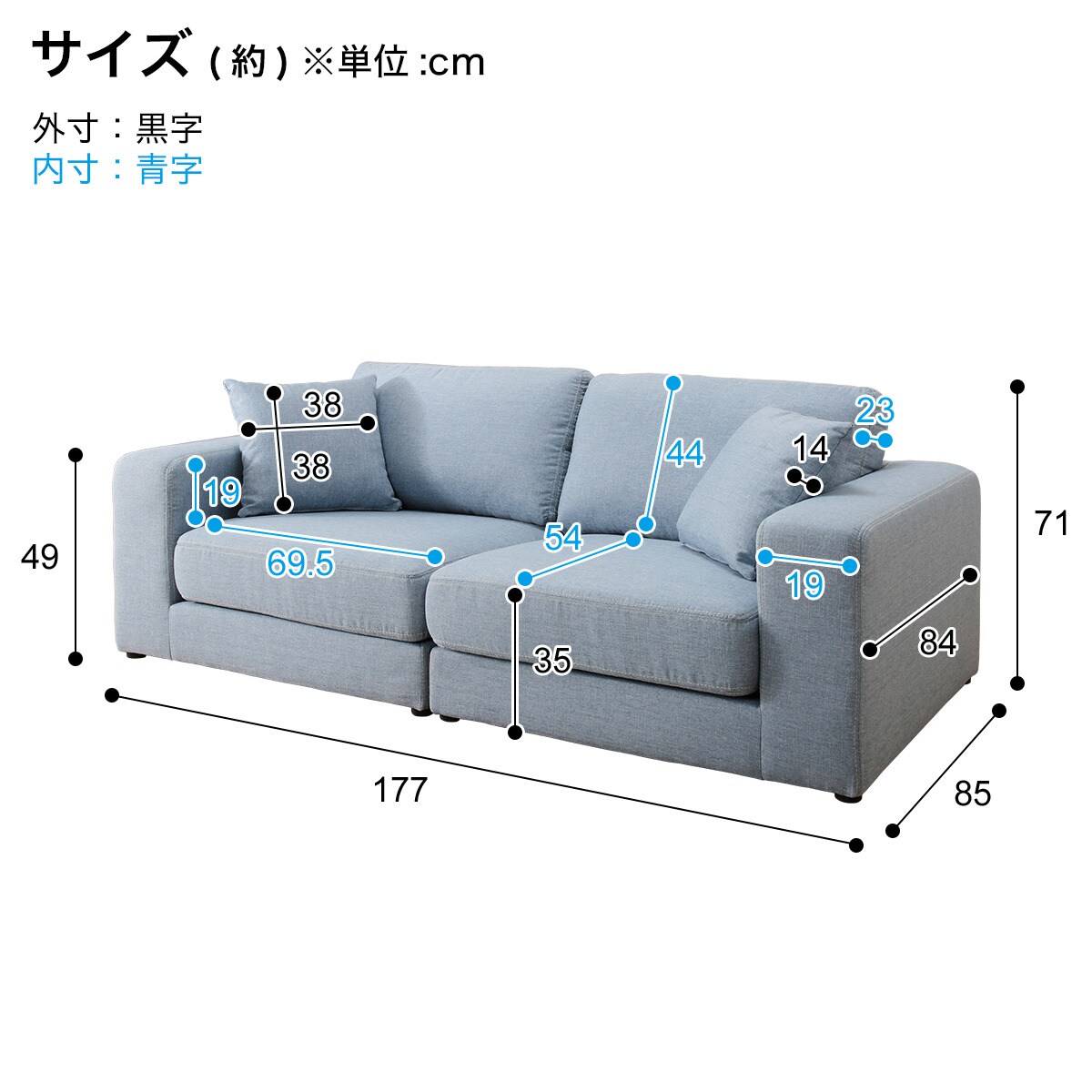 おしゃれなデニム風2人用ソファ クッション2個付き Bl 通販 ニトリネット 公式 家具 インテリア通販