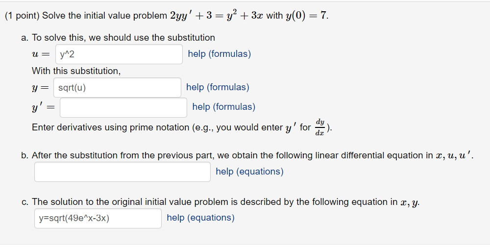 1 Point Solve The Initial Value Problem 2yy 3y 3x With Y 0 4 A To Solve This We Homeworklib
