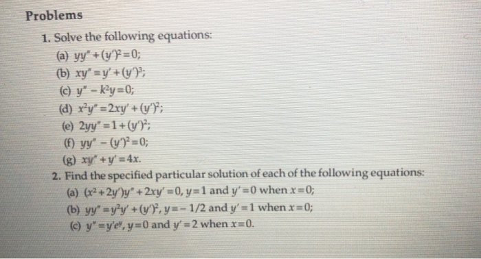 Solved Problems Part9 Solve The Following Equations Probl Chegg Com