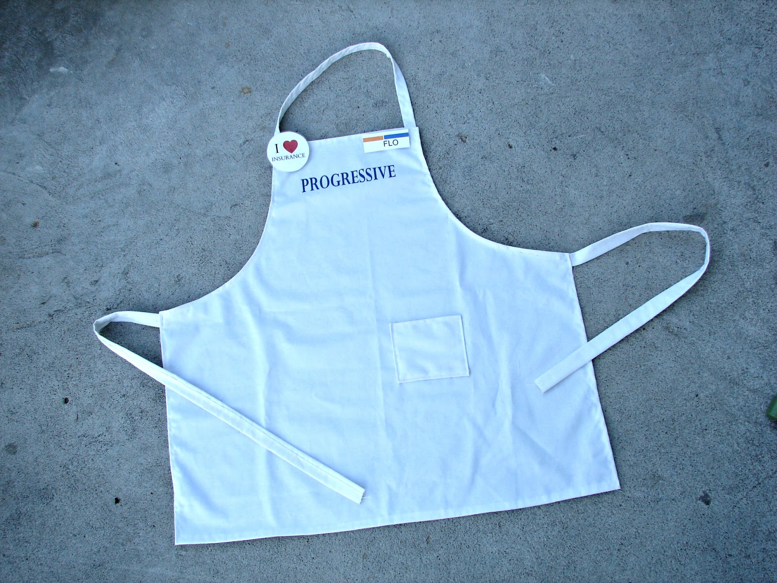 Once the logo is printed, cut it to fit on the top of the apron. Print off the Progressive Insurance logo onto the printable iron on transfer paper or cut out Progressive logo on blue vinyl. You can practice a hilarious act or just show up and smile.