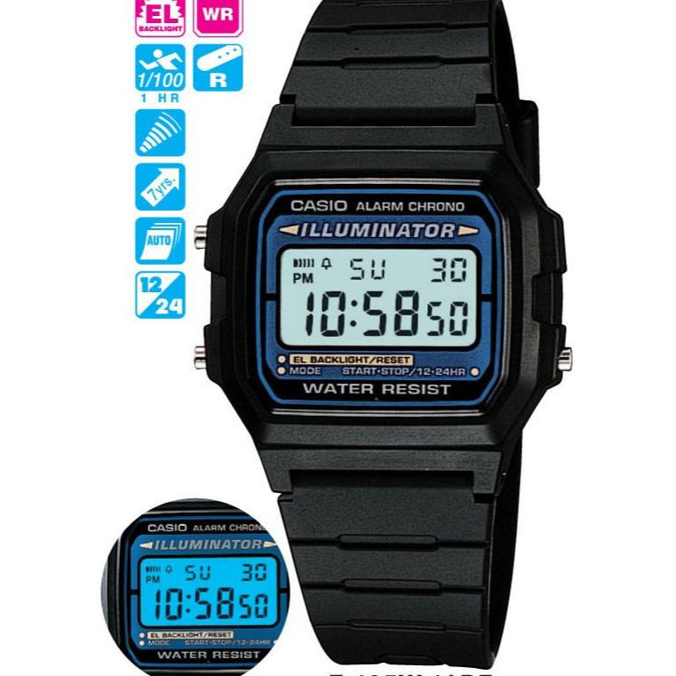 Casio F 105w 1a Mens Black Resin Band Alarm Blue Light Digital Watch W Box Watchcharts
