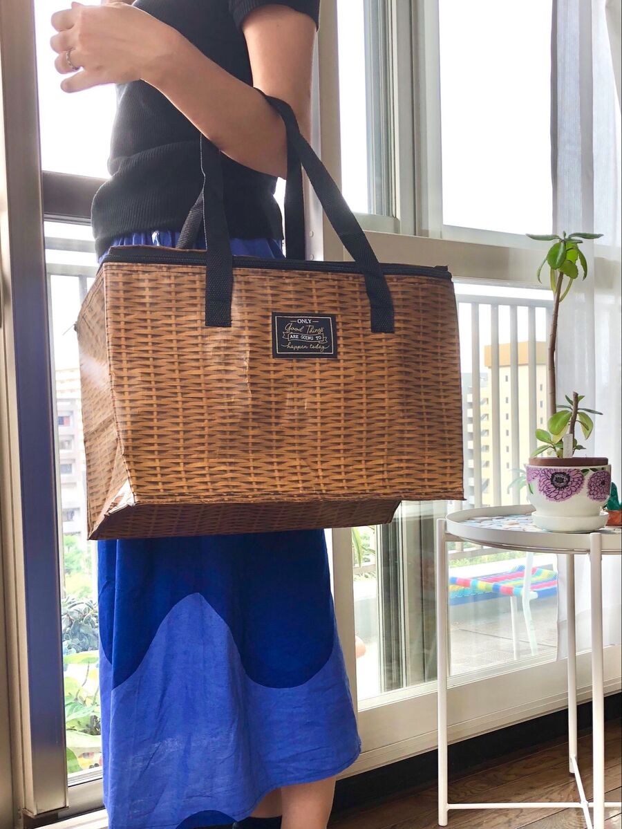 ダイソー大きな保冷バッグ かごプリントが可愛い 暮らしニスタ