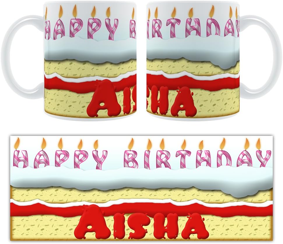 Happy Birthday Aisha Birthday Cake Personalised Ceramic Mug Amazon Co Uk Kitchen Home