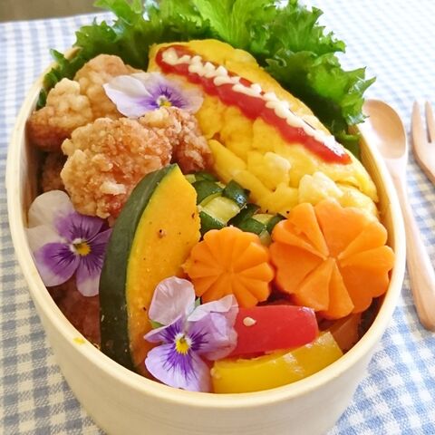 オムライス唐揚げ弁当 花を添えて 暮らしニスタ