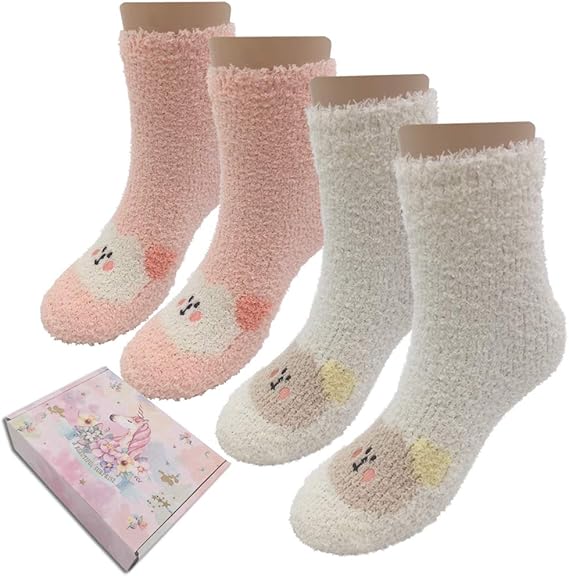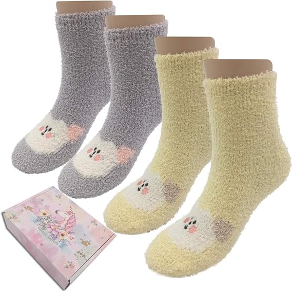 Amazon Yosang 4足セット もこもこ靴下 冬 レディース 厚手 ルームソックス ふわふわ 防寒 足元あったか 柔らかい 可愛い 冷えとり 裏起毛 睡眠 ゆかいた専用 保温性 Style1 ソックス 通販