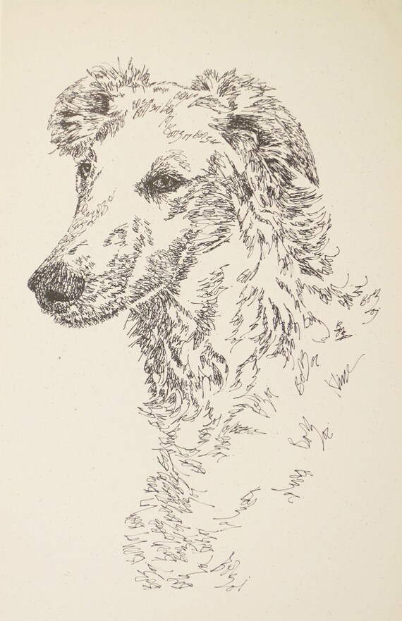 Borzoi Dog Art Portrait Drawing From Words Your Dog S Etsy