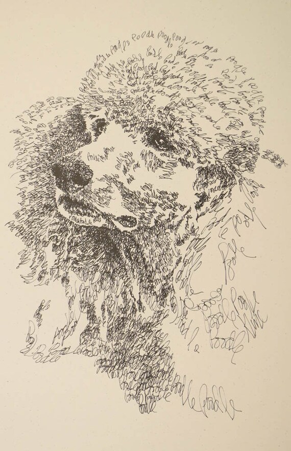 Standard Poodle Dog Art Portrait Drawing From Words Your Etsy