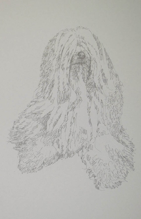 Old English Sheepdog Dog Art Portrait Drawing From Words Your Etsy