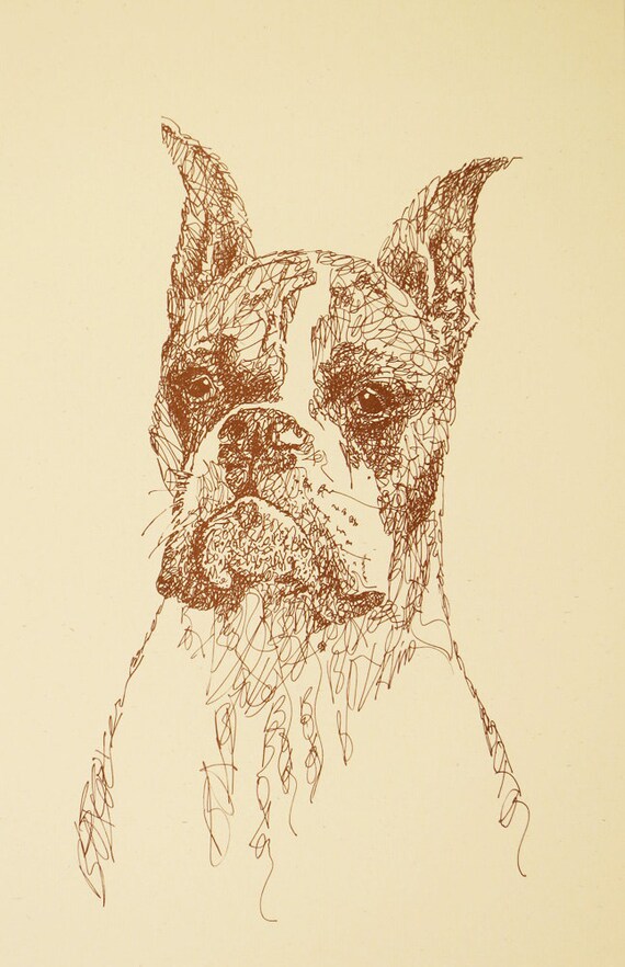 Boxer Cropped Dog Art Portrait Drawing From Words Your Etsy