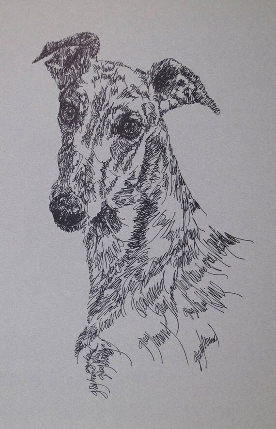 Greyhound Dog Art Portrait Drawing From Words Your Dog S Etsy