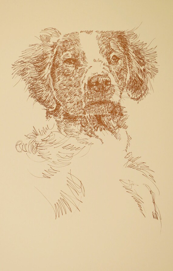 Brittany Dog Art Portrait Drawing From Words Your Dog S Etsy