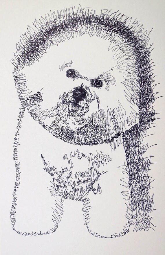 Bichon Frise Dog Art Portrait Drawing From Words Your Etsy