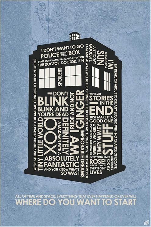 Amazon Com Doctor Who Tardis Where Do You Want To Start Giclee Art Print Poster From Typography Drawing By Pop Artist Stephen P 24 X 36 Posters Prints