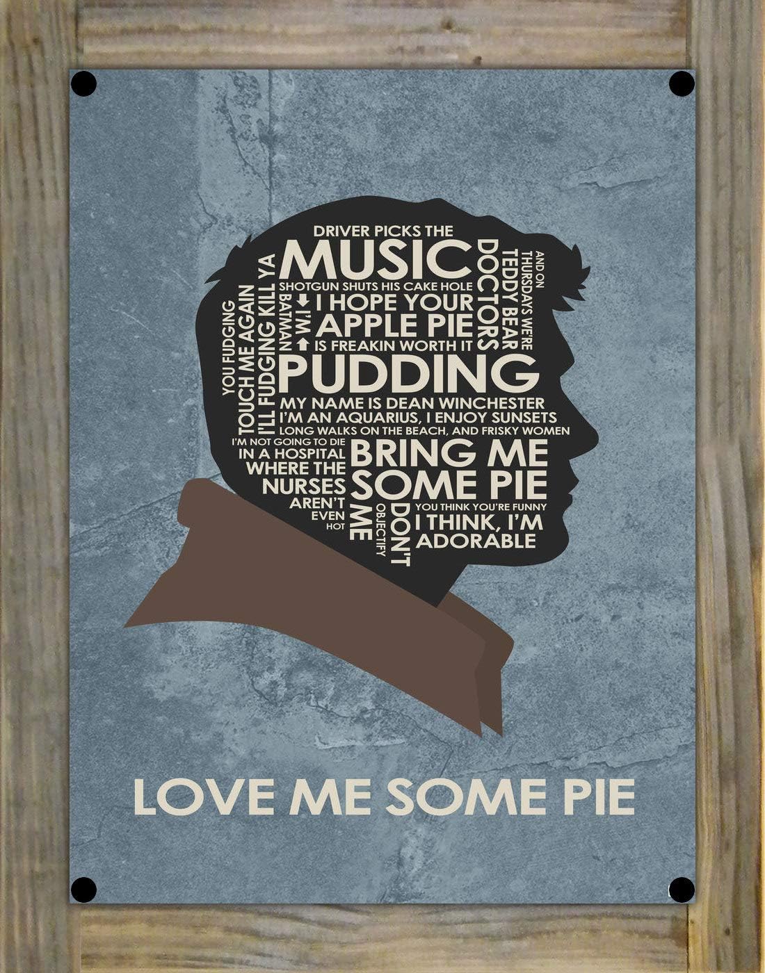 Amazon Com Northwest Art Mall Supernatural Dean Winchester Love Me Some Pie Metal Print On Reclaimed Barn Wood From Typography Drawing By Pop Artist Stephen P 9 X 12 Posters Prints