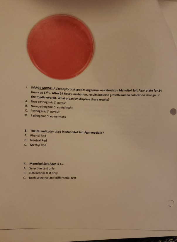 Solved Stoph Epidermidis Mannitol Salt Agar Plate Resul Chegg Com