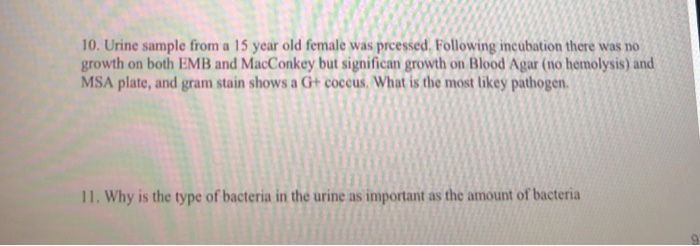 Solved 10 Urine Sample From A 15 Year Old Female Was Prc Chegg Com
