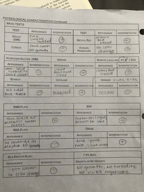 Microbio 225 Lab Test 3 Selective And Differential Media Imvic Biochem Tests With Some Bacterial Samples Flashcards Questions And Answers Quizlet