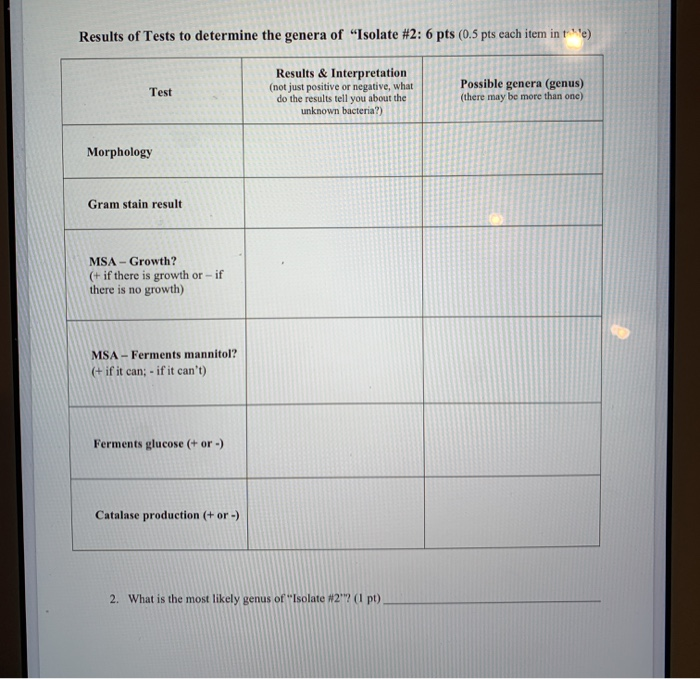 Solved Test Results For Isolate 1 Msa Plate Glucose Br Chegg Com