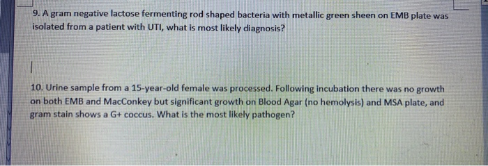 Solved 9 A Gram Negative Lactose Fermenting Rod Shaped B Chegg Com