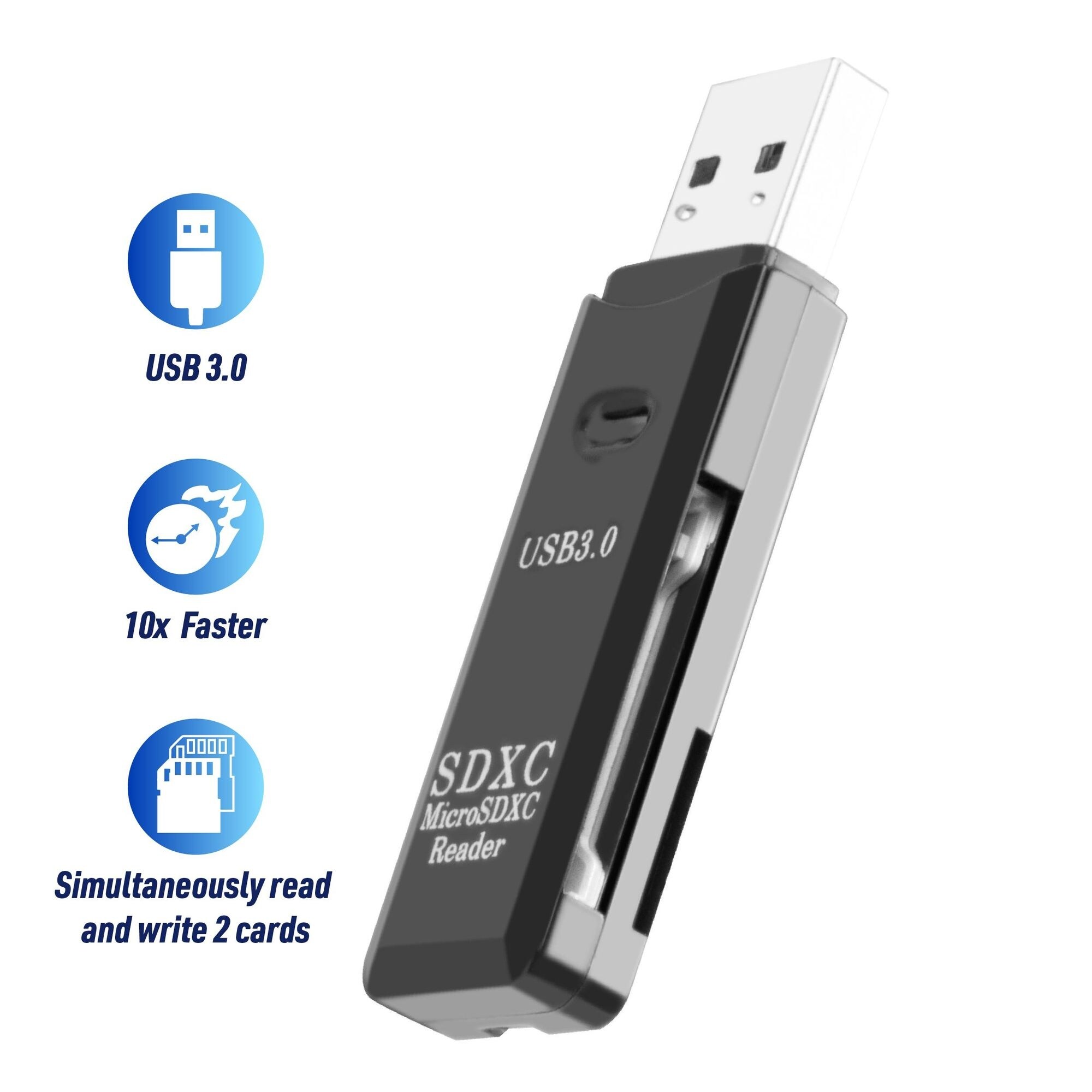 Shop Dual Slot Card Reader Usb 3 0 Micro Sd Sdxc Sdhc Uhs I Mmc Pc Mac Black Overstock