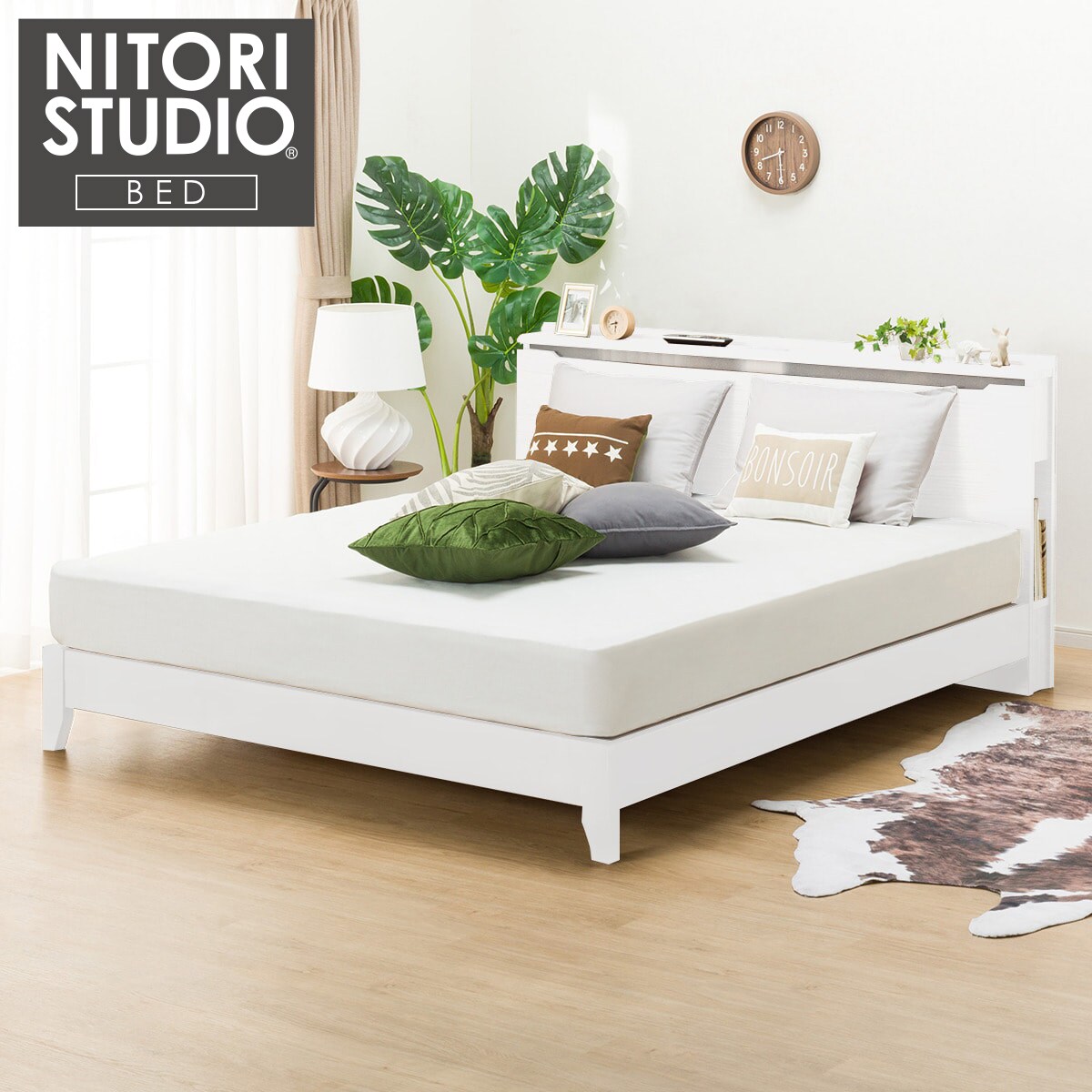 クイーン棚付ベッドフレーム コンソン Wh Leg 通販 ニトリネット 公式 家具 インテリア通販