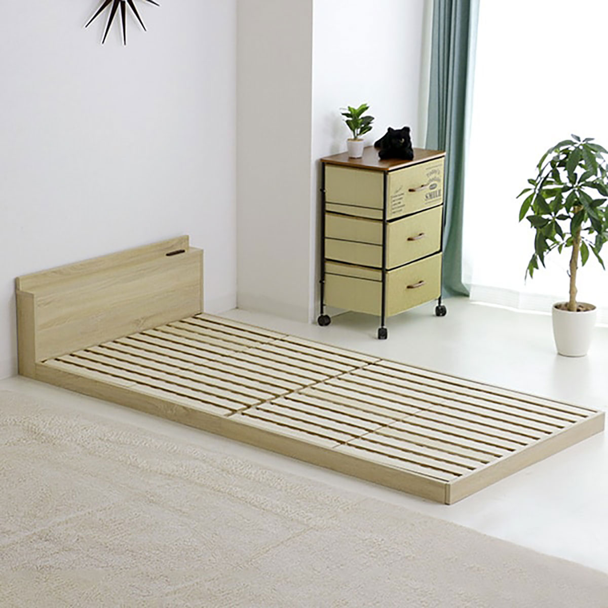 ベッドルームをスッキリと ニトリ 折りたたんで布団干しも出来るスノコベッド Limia リミア