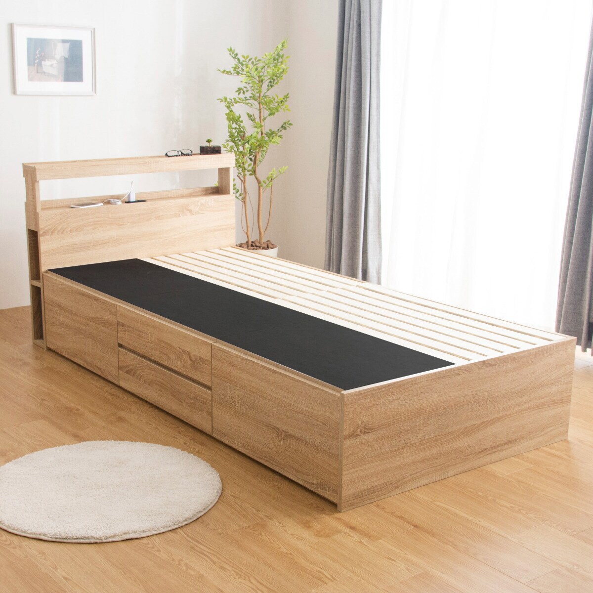 セミダブル棚付引出し付ベッドフレーム アザン Lbr2 アサヒキ25 通販 ニトリネット 公式 家具 インテリア通販