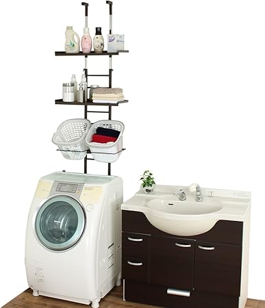 Amazon 川口工器 突っ張り ランドリーラック つっぱり 洗濯機ラック バスケット付 ブラウン 棚2段 バスケット 川口工器 Kawaguchi Koki ランドリー収納